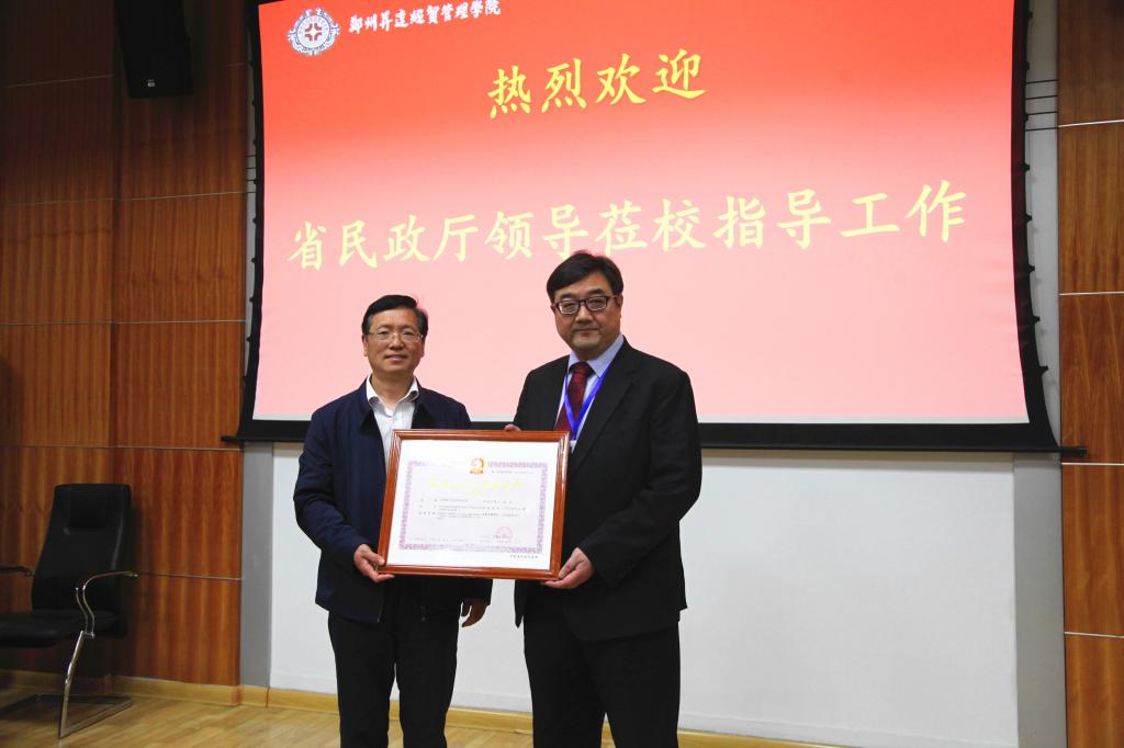 2019年3月14日,由郑州升达经贸管理学院发起成立的河南省广亚教育基金会,经省民政厅、省教育厅批准,正式注册登记。3月25日下午,省民政厅社会组织管理局副局长尹华明、副调研员王红芸莅校指导河南省广亚教育基金会工作。我校执行董事兼基金会名誉理事长王新奇博士、常务副校长崔慕岳、会计学院院长兼基金会理事长张欣、董事会秘书兼基金会副理事长沈定军、审计处长兼基金会监事李博,校办主任朱永恒、基金会秘书长刘昊、理事冯亚飞等同仁在行政楼第二会议室接待了贵宾一行,并进行了座谈。