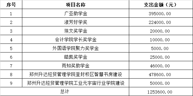 2025年第四季度,各项公益项目有序推进,主要用于奖助学项目、校园建设项目、学院建设项目等领域,具体支出明细详见下图: